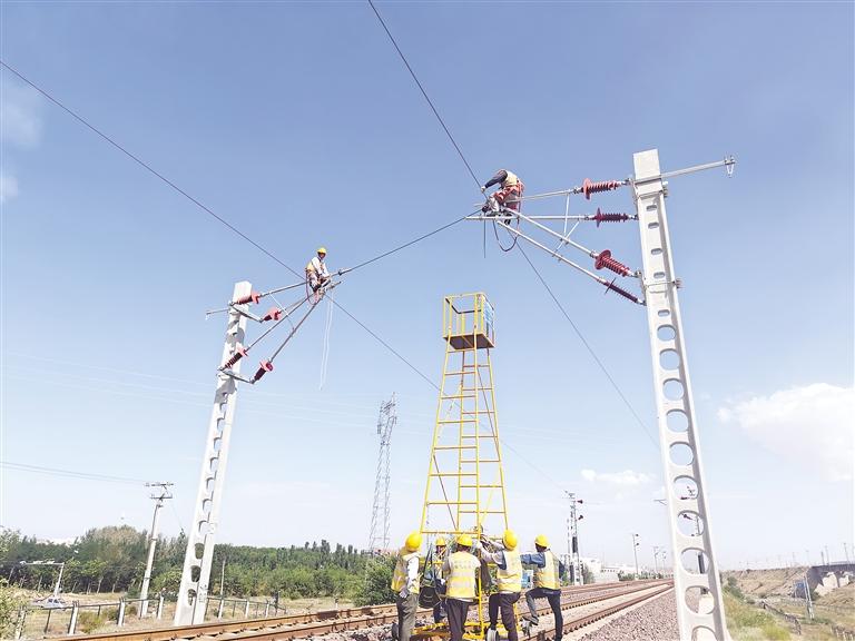8月28日,建设者奋战在宁东铁路电气化改造项目建设一线。记者 李峰 摄