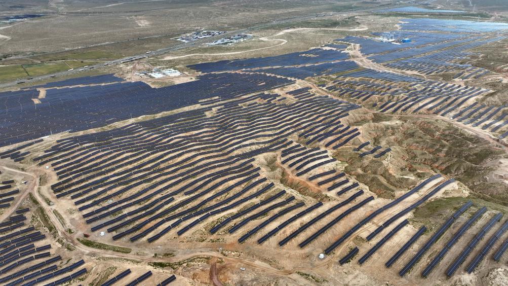 10月29日,由中铁十一局集团承建的宁夏电投中卫迎水桥350MW风光同场一期项目在宁夏中卫市沙坡头区实现光伏区全容量并网。