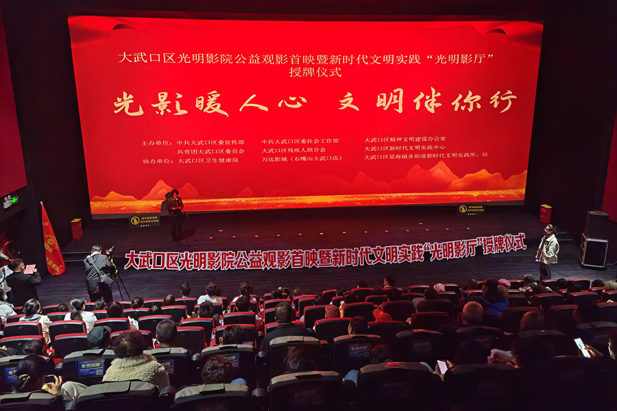 11月7日,“光影暖人心·文明伴你行——大武口区“光明影院”公益观影首映暨新时代文明实践‘光明影厅’授牌仪式”在石嘴山万达影城启幕,辖区近200名视障人士、家属、志愿者,以及相关部门负责人共同见证这一温暖时刻。