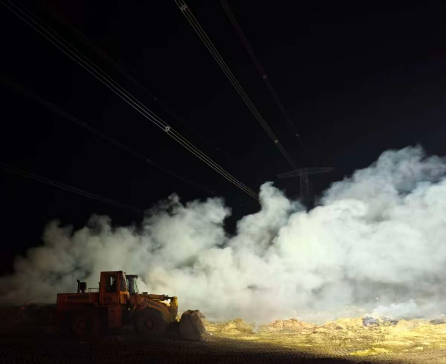 时值初冬,天干物燥,农户储备越冬草料集中堆放,受冬季干燥、大风影响,极易引发大规模火情,对该区域线路安全运行造成影响。接到预警后,运维人员立即启动应急预案,通知护线员火速赶赴现场蹲守监护,并紧急联动消防、应急部门协同处置。