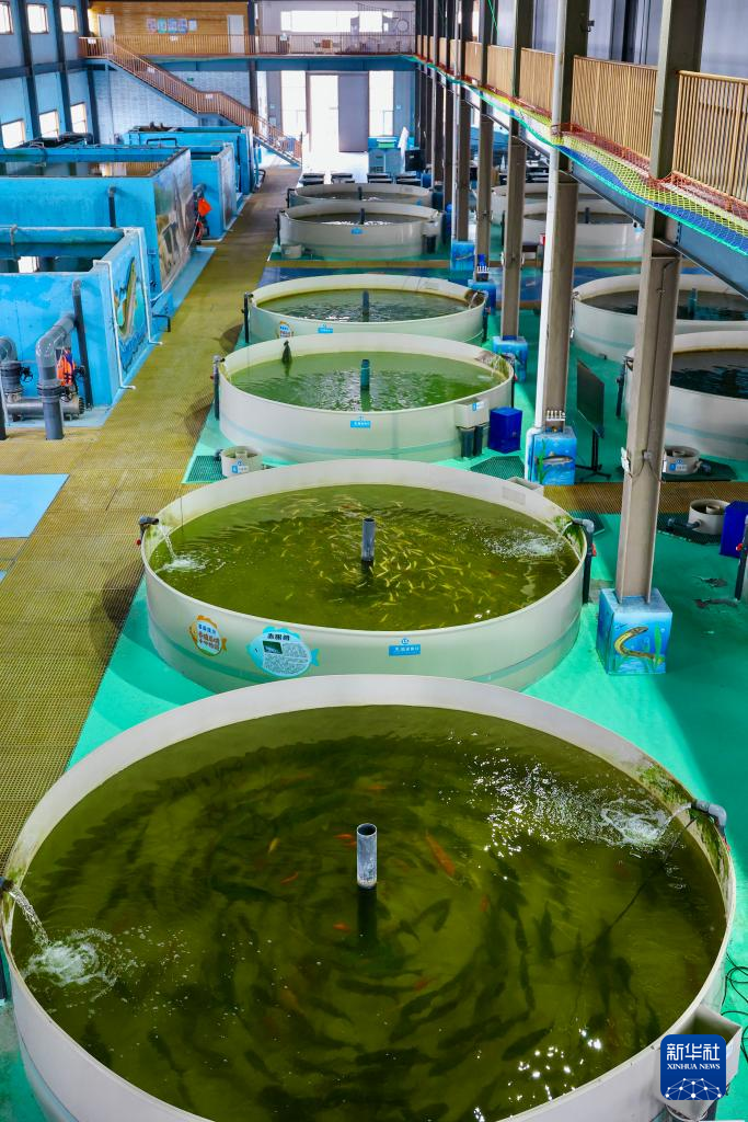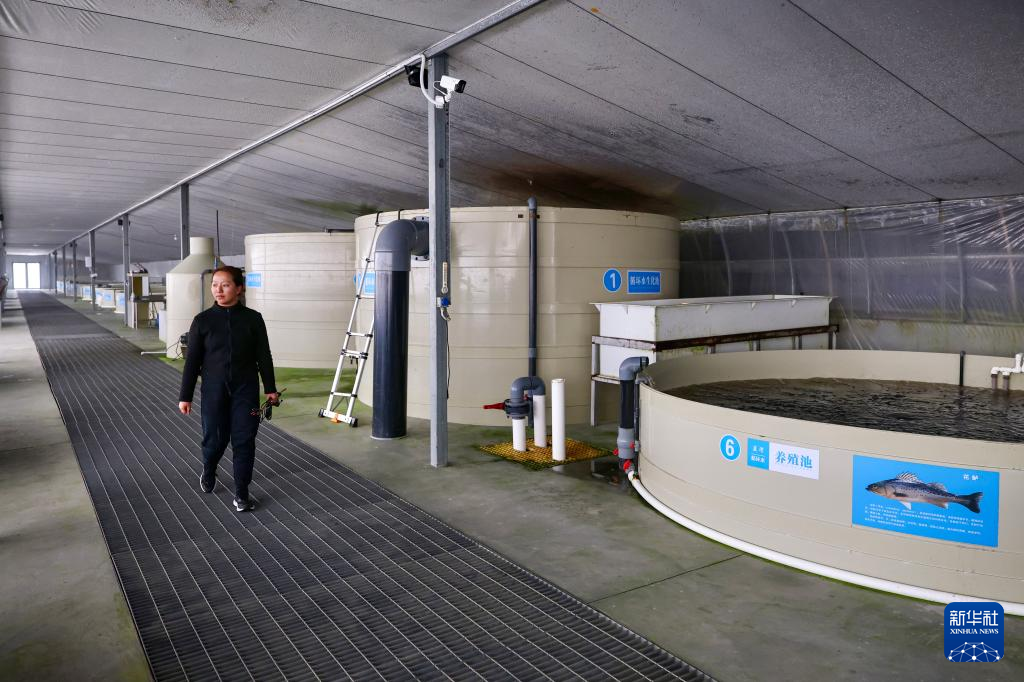 近年来,宁夏银川市贺兰县借助闽宁协作平台,挖掘盐碱地农业发展潜力,发展水产养殖,建设工厂化养殖车间和渔业设施温棚,引进大黄鱼、青蟹、黄鳍鲷、大西洋鲑等经济品种,探索“以渔治碱”新路径。新华社记者 杨植森 摄