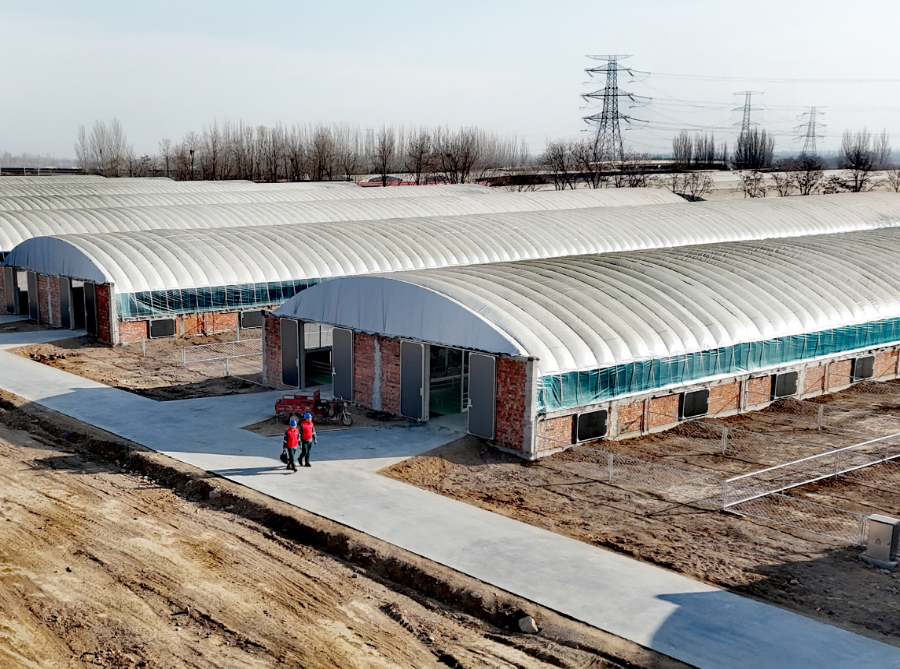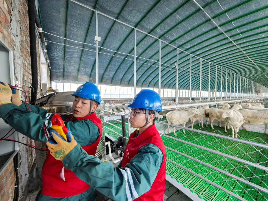 完成箱变验收后,服务队员又来到新建成的肉羊养殖场。在宽敞的羊舍内,自动喂料机正沿着轨道缓缓移动,将精准配比的饲料投放到食槽中;恒温饮水槽自动加热,保证羊群在零下十几度的严寒中也能喝上温水;顶部的自动卷膜器根据光照和温度自动调节通风口开合,整个养殖过程充满了“科技范儿”。