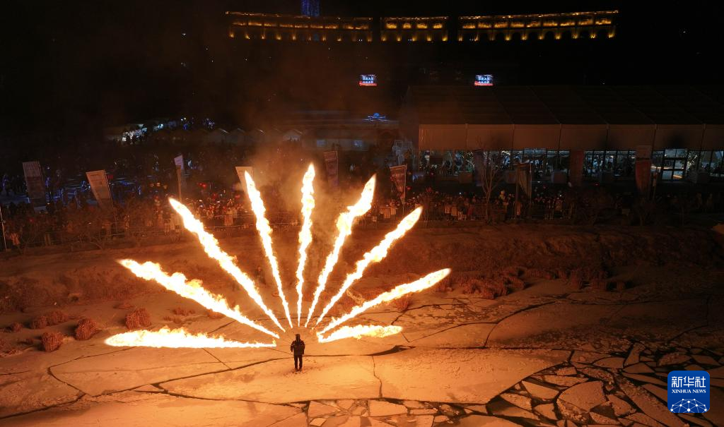 2025年12月31日晚,人们在银川文旅集团览山公园参与跨年活动(无人机照片)。