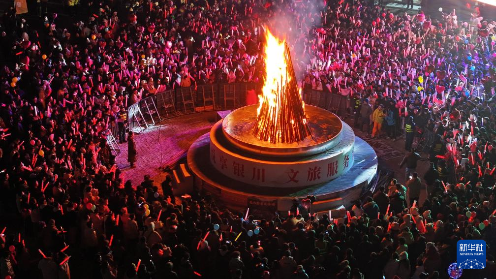 2025年12月31日晚,人们在银川文旅集团览山公园参加跨年活动(无人机照片)。