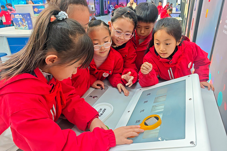 在大武口工业遗址公园流动科技馆内,孩子们在工作人员引导下,通过观察灯泡颜色变化判断温度、用高清显微镜探索昆虫细胞切片、协作探究小球在不同轨道的运动规律,在互动中直观领悟生物、物理、化学等学科知识。在科技馆,孩子们还亲手拼装我国现役武器装备模型,在实践中深化对国防科技的理解,脸上洋溢着自信与自豪。