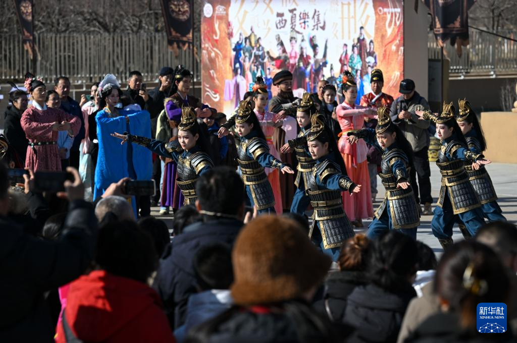 2月13日,《西夏乐集》行浸式演艺在银川市西夏陵景区正式启幕。作为我国第60项世界遗产所在地,西夏陵景区推出“文旅+演艺”旅游消费新场景,以独特的体验模式,让游客在行走间穿越古今,感受多民族融合的美好图景。活动期间西夏陵景区还将同步执行首道门票免费政策。新华社记者 冯开华 摄