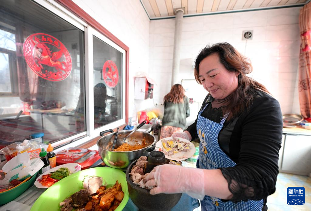 2月16日,吴维东的妻子韩树琴在准备食材和调味品。