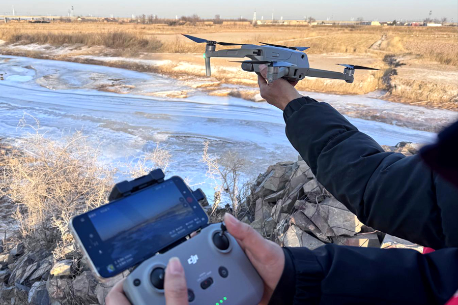 “过去巡河主要靠‘铁脚板’,现在有了无人机助力,不仅效率高了,安全性也大幅提升。”黄沙窝村驻村第一书记马润丰一边熟练操作无人机,一边介绍道。通过屏幕精准定位、实时取证,隐蔽区域的环境隐患在高空视角下无处遁形,影像资料也为后续执法和整改提供了有力支撑。