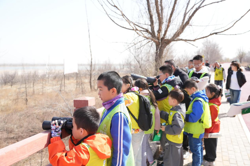 随后,在花马湖畔开展实地观鸟活动,借助专业观鸟工具,近距离观察鸟儿栖息、嬉戏、飞翔的灵动姿态,在工作人员指导下辨识鸟类特征,感受人与自然和谐共生的美好。孩子们通过手绘飞鸟、手工搭建鸟巢等实践环节,将对鸟类的喜爱与守护之心融入行动,用童真创意与暖心举措践行护鸟承诺。