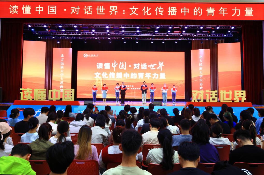 14日,北方民族大学举办“读懂中国·对话世界:文化传播中的青年力量”主题大思政课,以期教育引导青年学子做中华文化的传承者、中国故事的讲述者。中阿卫视驻华记者方浩明,西南民族大学外国语言文学学院副院长邓忠,北方民族大学“石榴籽”大学生宣讲团6名宣讲员代表和外国语学院教授张玫联袂主讲。