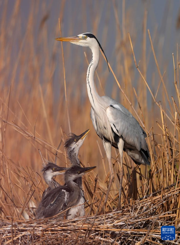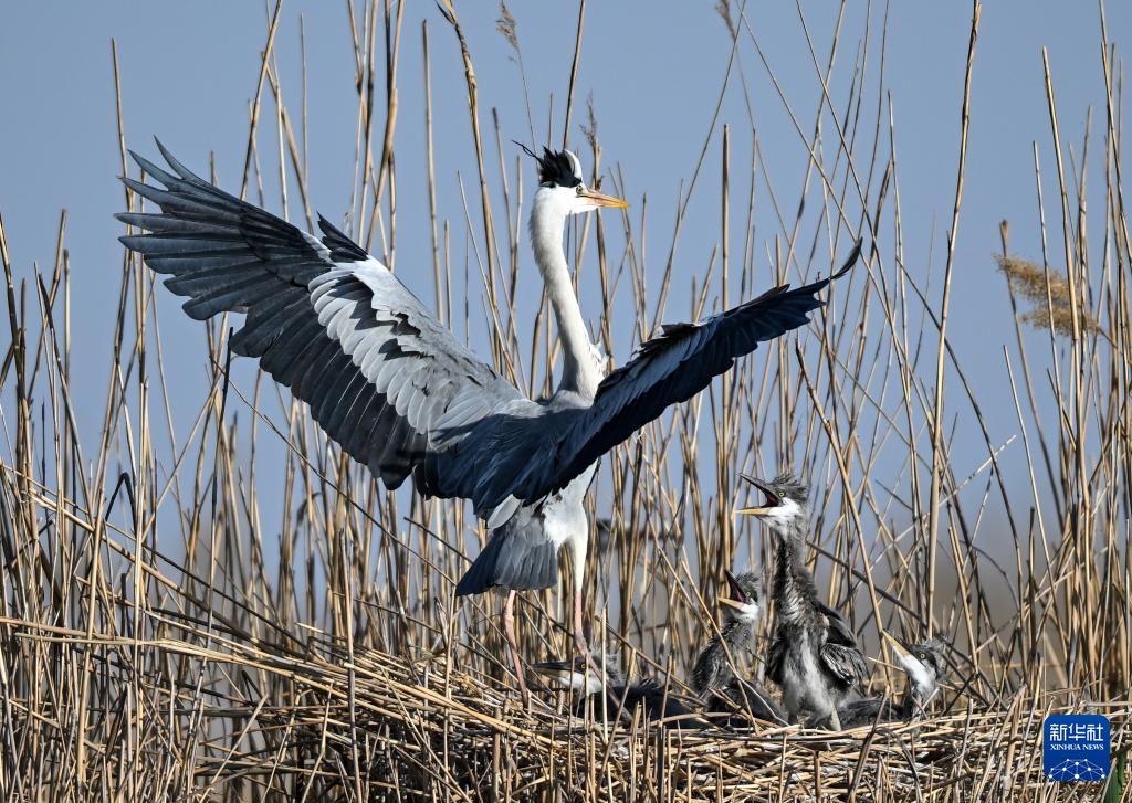 这是4月18日在沙湖拍摄的苍鹭雏鸟。新华社记者 冯开华 摄