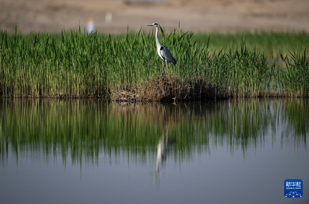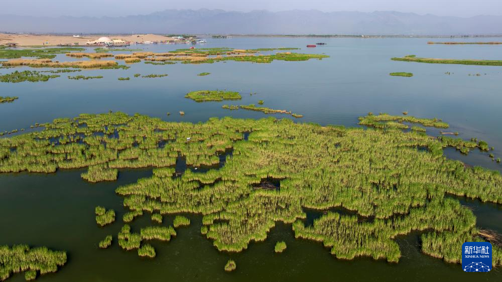 暮春时节,在位于宁夏石嘴山市的宁夏沙湖景区,湖面芦苇新芽初绽,候鸟在此筑巢栖息,绘就一幅“沙水相依、塞上江南”的春日生态画卷。