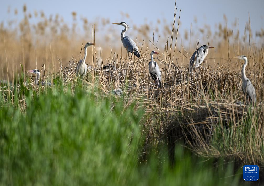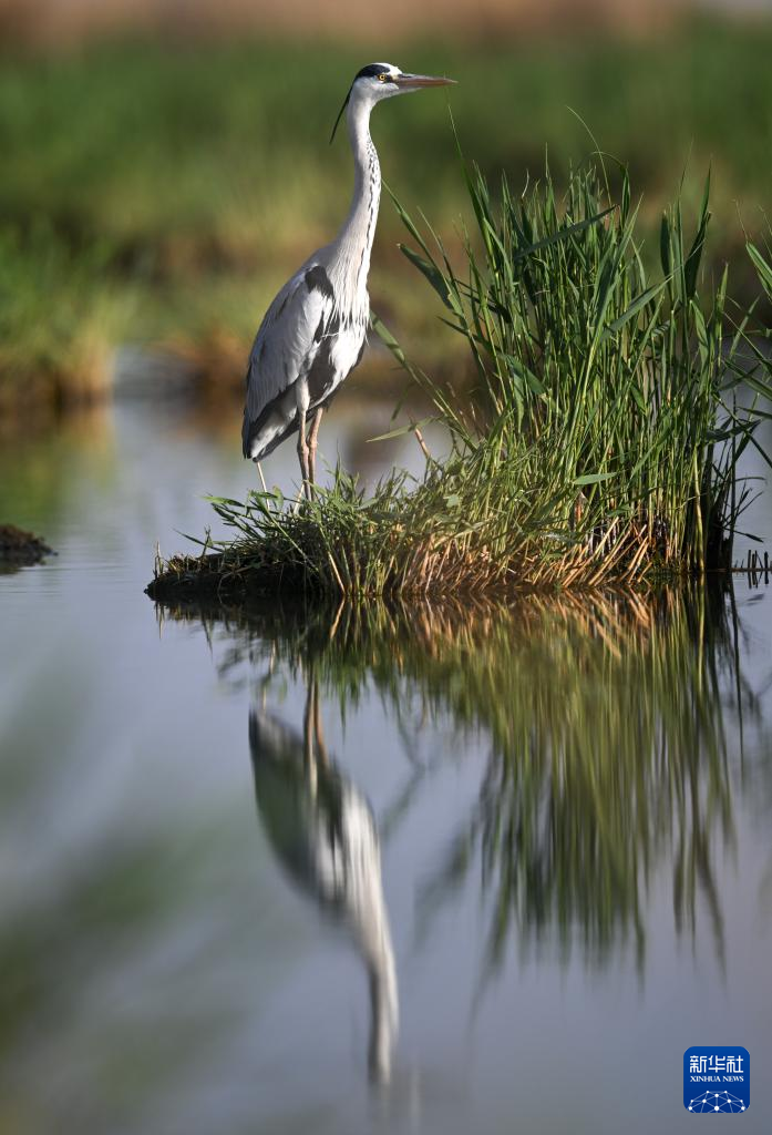 4月17日,苍鹭在沙湖中栖息。新华社记者 冯开华 摄