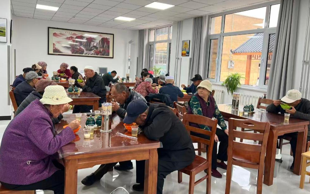 老人在吴忠市利通区胜利镇综合养老服务中心的老年饭桌就餐。受访者供图