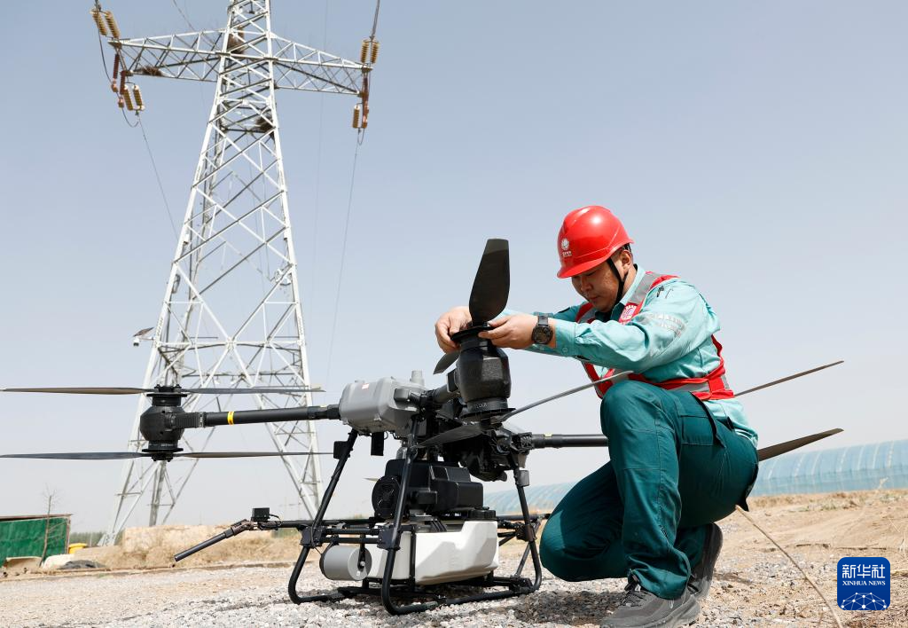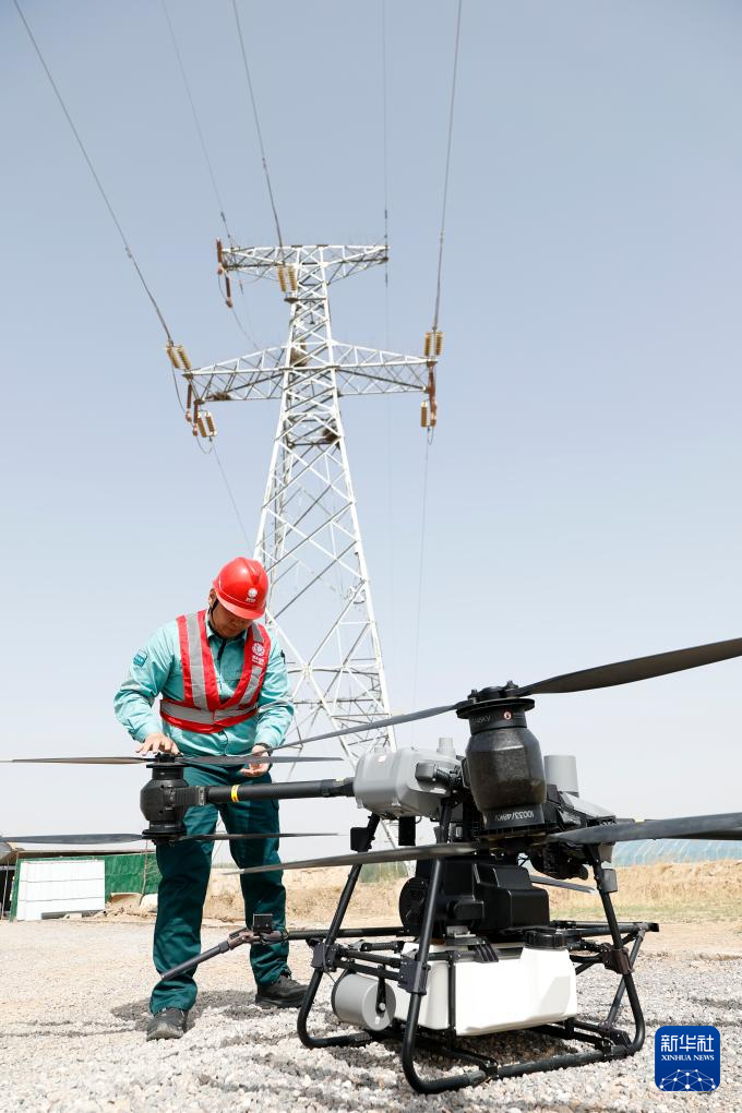 据悉,绝缘子污染是导致输电线路发生跳闸故障的因素之一。传统清洗方式需要在停电条件下人工攀登杆塔,作业人员多、耗时费力、安全风险高。利用大载重无人机加高水压冲洗装置,无需停电即可完成清洗作业,清洗效率大幅提升,有效保障电网稳定运行。新华社记者 王鹏 摄
