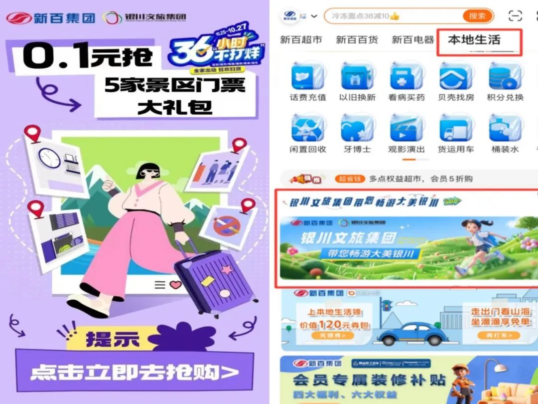 自8月以来,在银川市商务局、银川市文旅局、银川市国资委及相关部门的指导支持下,银川文旅集团联合各大商企推出“三业态(住宿、餐饮、零售)+景区门票”的线上线下互惠政策,引进商超、物流进景区,文创进商圈,不断创新消费新场景,推出联合消费新产品,推进“商业+文旅”深度融合。截至目前,在银川文旅集团和新百集团、阅彩集团等商业综合体达成战略合作的基础上,新增品牌酒店、特色餐饮60余家,形成银川市商文旅深度融合促消费战略合作联盟。
