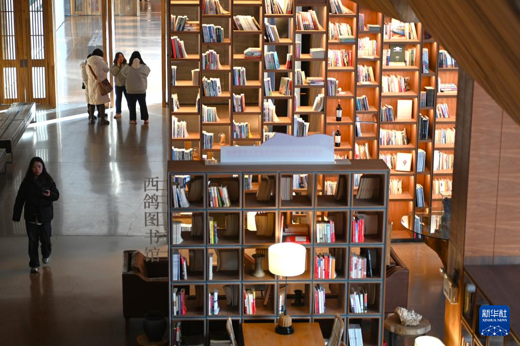 11月27日,游客在位于宁夏青铜峡市的西鸽酒庄图书馆参观。