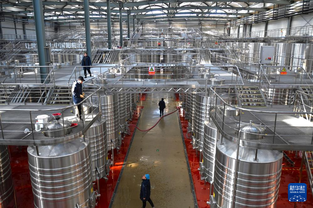 11月27日,技术人员在位于宁夏青铜峡市的西鸽酒庄酿造车间工作。
