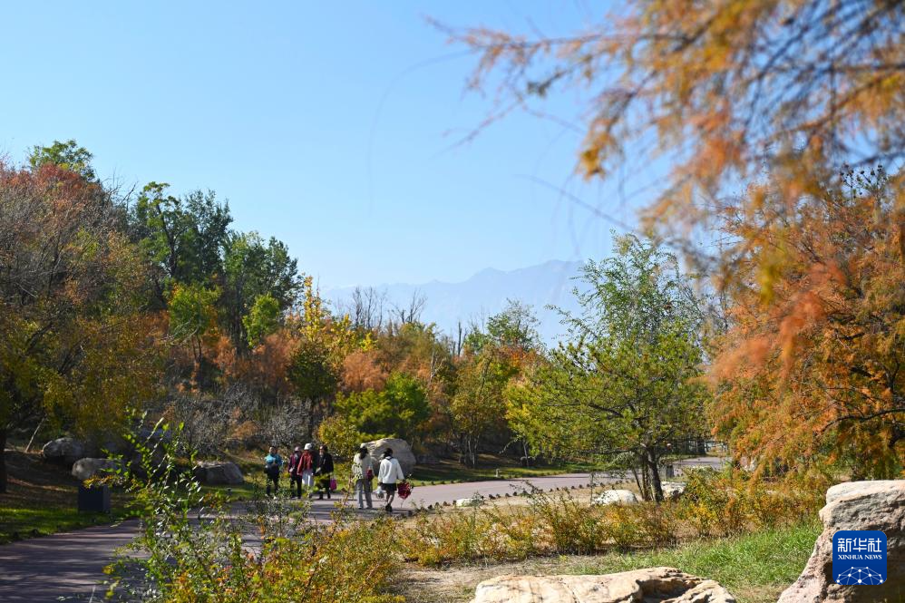 10月23日,游客在位于宁夏银川市的志辉源石酒庄欣赏贺兰山景色。