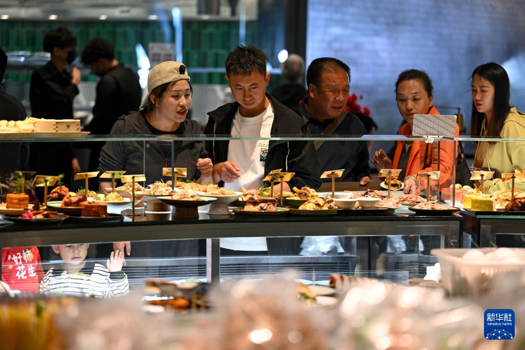 9月24日,顾客在宁夏吴忠市一家早茶店选购小吃和菜品。