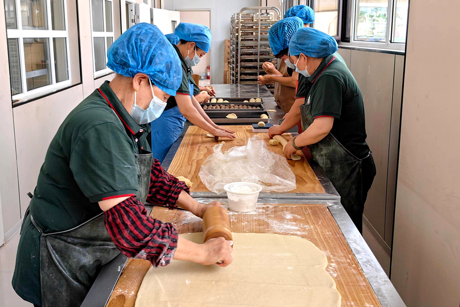 “以前在家只能围着灶台转,没想着还能靠做点心挣钱!在合作社的工坊里做月饼,一个月能挣2000多块,日子踏实多了。”正在包馅的工人纪秀兰满脸笑意,“合作社专门请了师傅来教技术,从和面的软硬度到馅料的配比,都教得特别细致。我们做的月饼味道好,价格也实惠!”