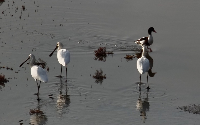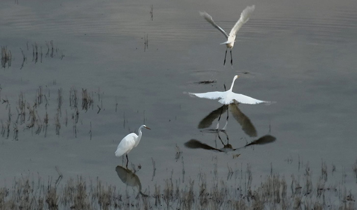 据了解,白琵鹭对环境变化极为敏感,而白鹭是湿地生态的重要指示物种。它们结伴而来,证明保护区的水质环境和食物链达到优质水平。