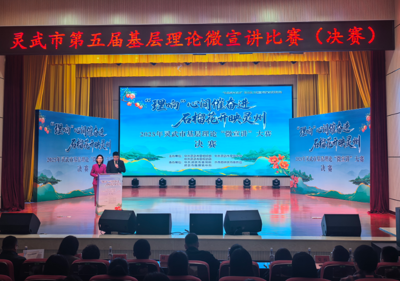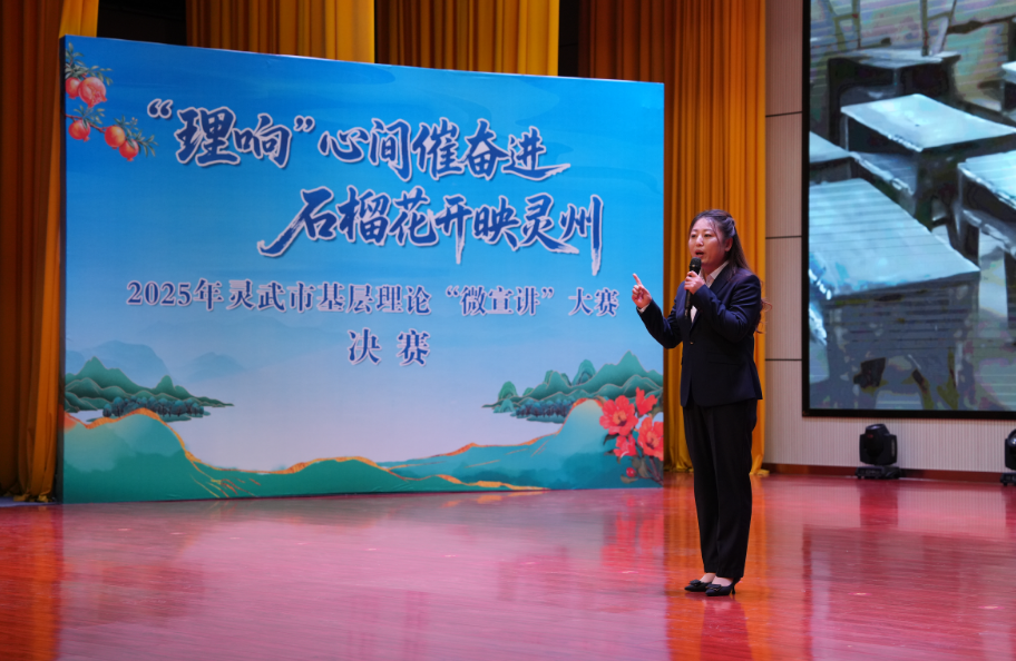 10月16日,由灵武市委组织部、宣传部、统战部联合主办的“‘‘理响’心间催奋进,石榴花开映灵州”2025年灵武市第五届基层理论“微宣讲”大赛决赛举办。经过前期初赛选拔,10组优秀选手脱颖而出,齐聚决赛舞台,以生动故事和真挚情感,呈现了一场精彩的理论宣讲盛宴。