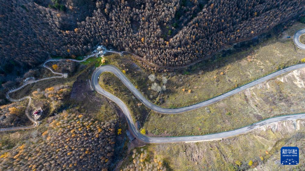 10月27日在宁夏固原市隆德县拍摄的六盘山秋景(无人机照片)。