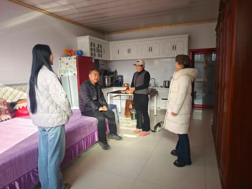 “同心红娘”金春燕(右一)入户宣传移风易俗相关政策。(受访者供图)