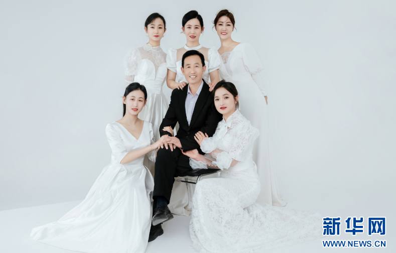 新华网银川12月8日电(张洁龙)一身黑色西装坐在正中间,5个女儿穿着中式白色婚纱紧紧依偎在父亲身边,满满的幸福感从相框溢出,与采访对象马明杰洋溢出的笑脸叠印……