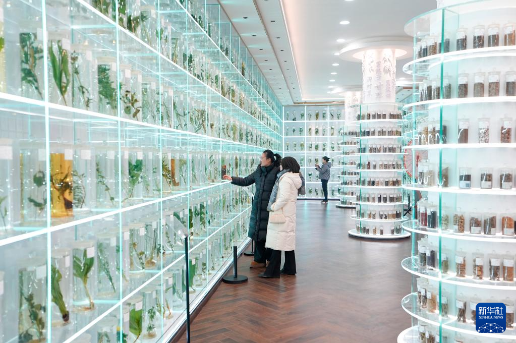 1月26日,游客在宁夏固原市隆德县中医药科普体验馆内参观。