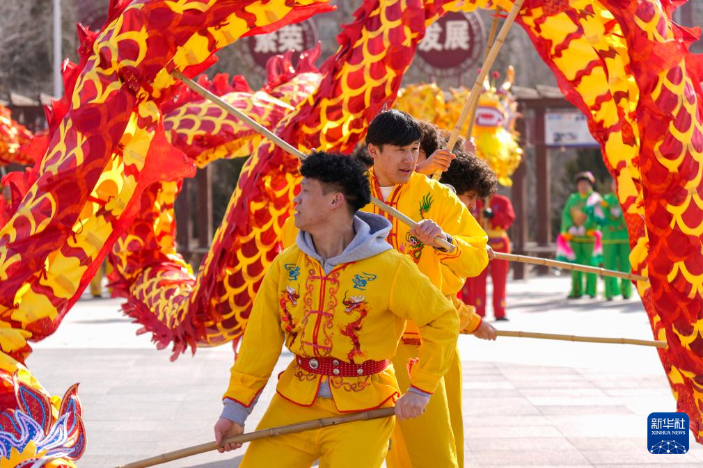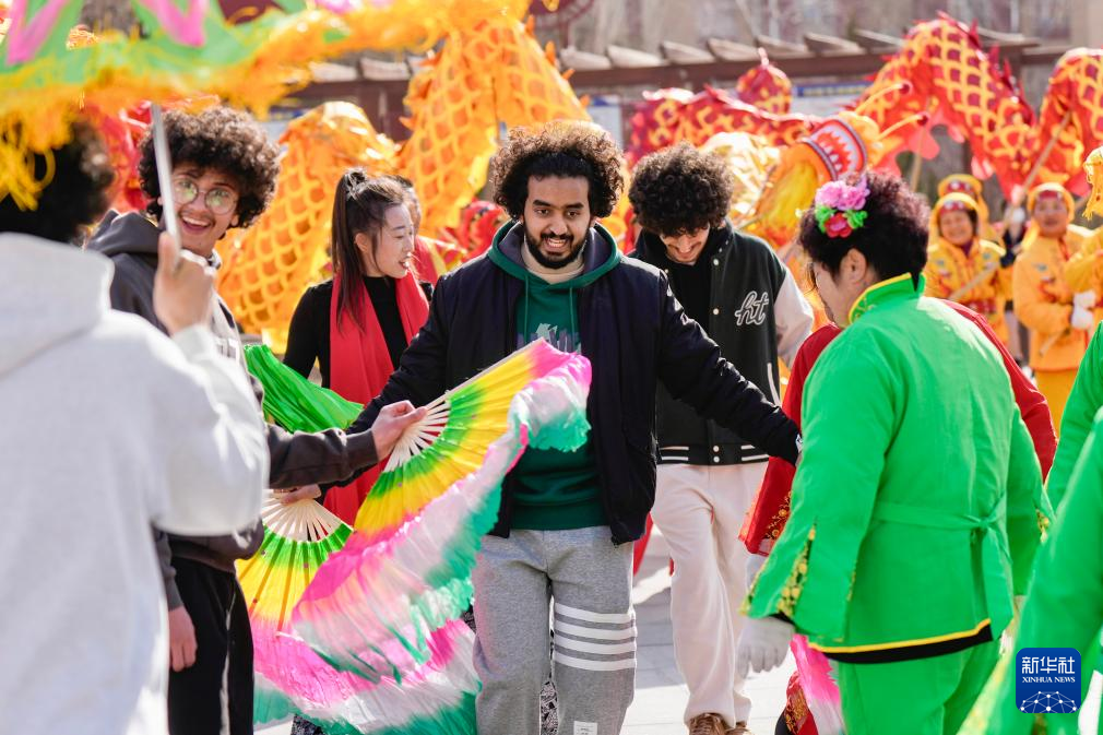 春节临近,北方民族大学国际教育学院的留学生受邀来到位于宁夏银川市西夏区的芦花洲社区,体验舞龙、扭秧歌、包饺子等活动,同当地居民一起感受中国的喜庆年味。新华社记者 杨植森 摄