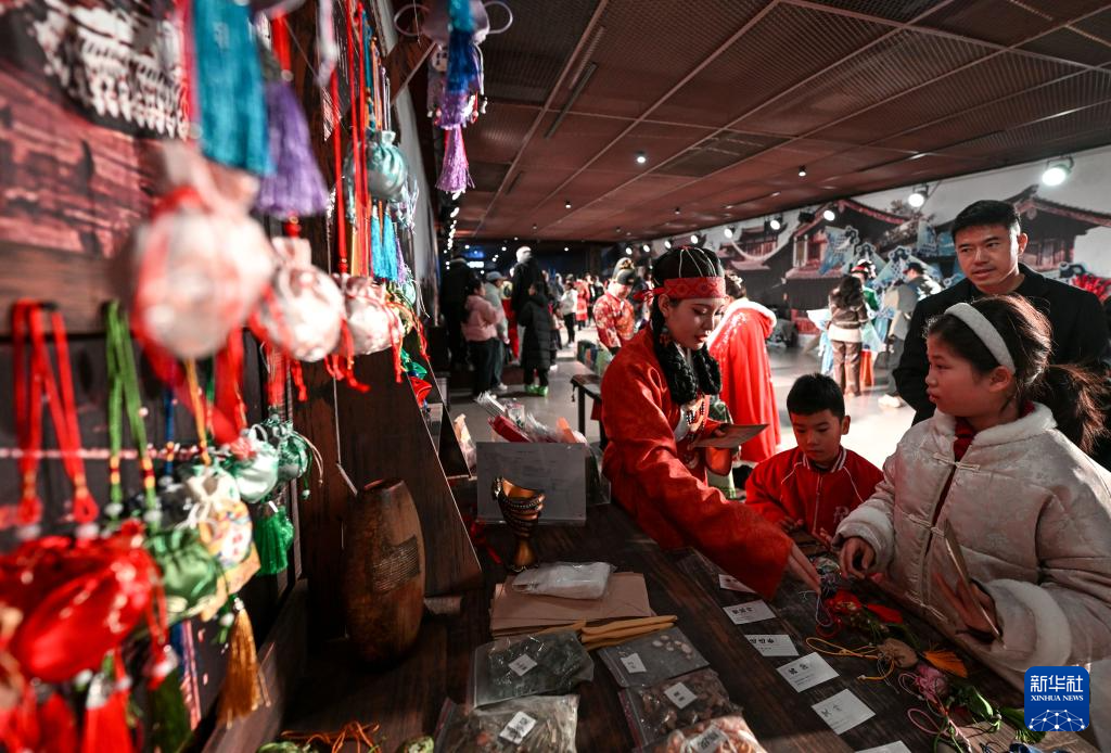 2月13日,游客在银川市西夏陵景区与演员互动。