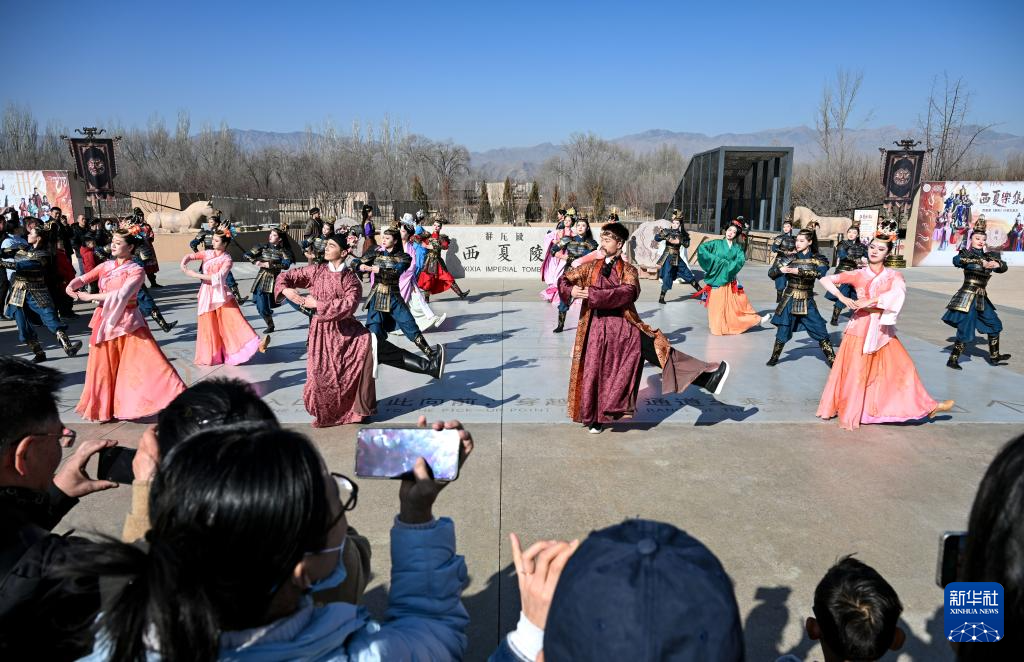 2月13日,《西夏乐集》行浸式演艺在银川市西夏陵景区正式启幕。作为我国第60项世界遗产所在地,西夏陵景区推出“文旅+演艺”旅游消费新场景,以独特的体验模式,让游客在行走间穿越古今,感受多民族融合的美好图景。活动期间西夏陵景区还将同步执行首道门票免费政策。新华社记者 冯开华 摄