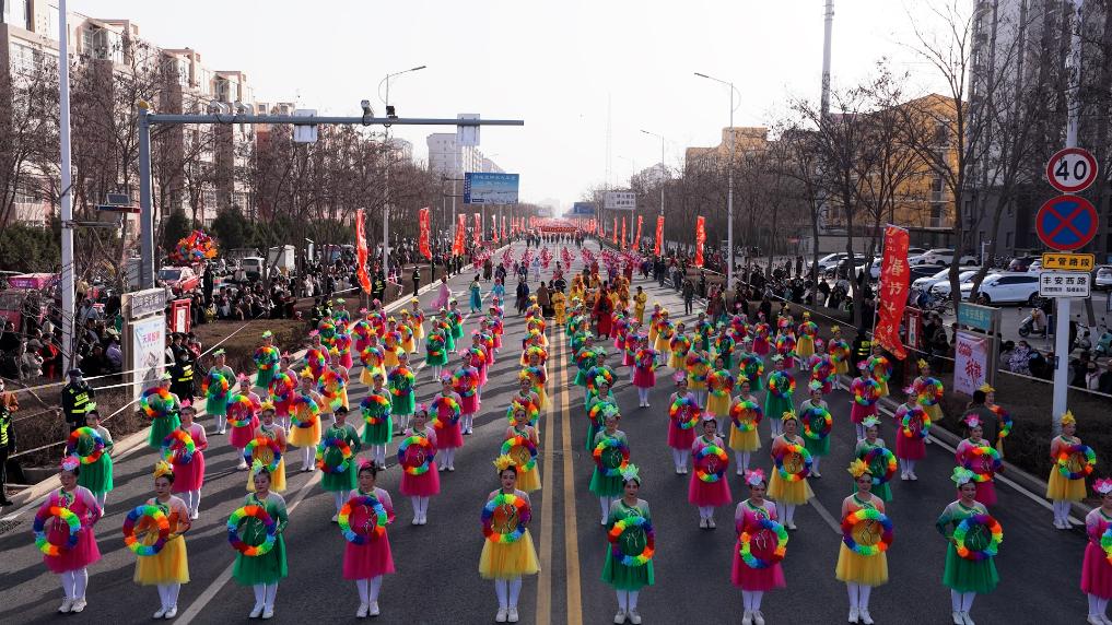 新华网银川3月3日电(记者马思嘉)3日,元宵佳节,宁夏回族自治区中卫市五馆一中心锣鼓喧天,人潮涌动。“奋进新中卫·吉祥过大年”2026年春节社火暨舞龙舞狮展演比赛在此举行,中卫市40余支队伍、近4000名表演者参与巡游展演。