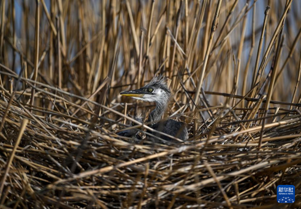 这是4月18日在沙湖拍摄的苍鹭雏鸟。新华社记者 冯开华 摄