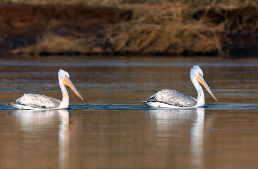 近日,银川市兴庆区黄河滩涂湿地迎来珍贵访客,5只国家一级保护野生动物卷羽鹈鹕集群栖息于此,被辖区湿地生态监测人员日常巡护时清晰观测记录,为春日黄河湿地增添一抹灵动生机。